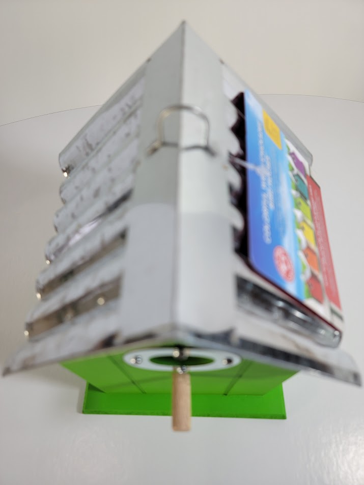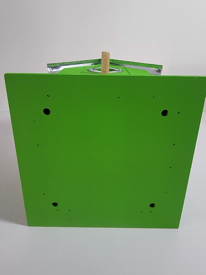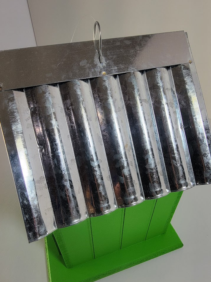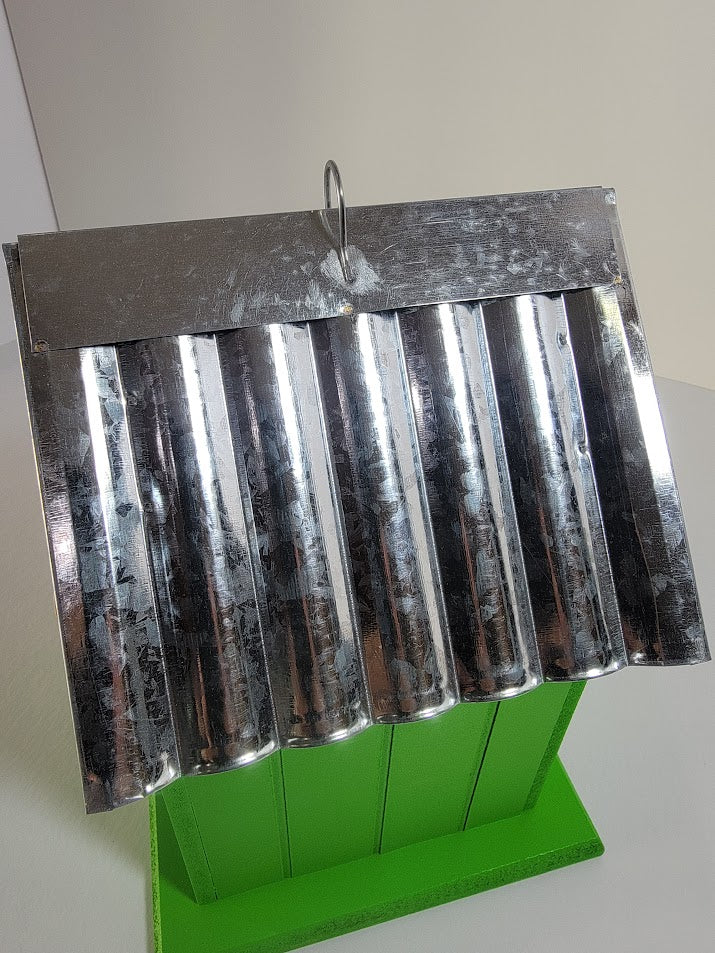 Style: Green Cedar Wood Birdhouse with Tin Metal Roof.